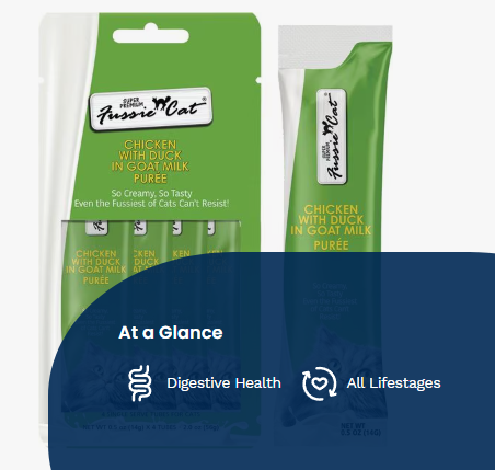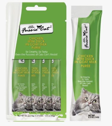 Fussie Cat Super Premium Chicken with Duck in Goat Milk Puree Lickable Cat Treats, 2-oz pouch, case of 4