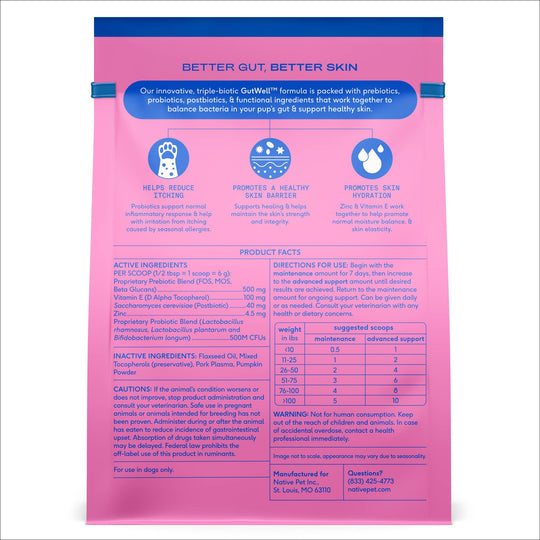 Native Pet GutWell Itchy Skin, Anti Itch Supplement for Dogs