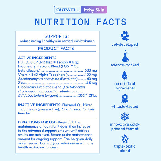 Soothe their skin from within. New Native Pet GutWell: Itchy Skin supports skin hydration, immune balance, and barrier function with a targeted triple-biotic blend of prebiotics, probiotics, and postbiotics. Clinically studied strains help manage itching and...Regular price $29.99 -