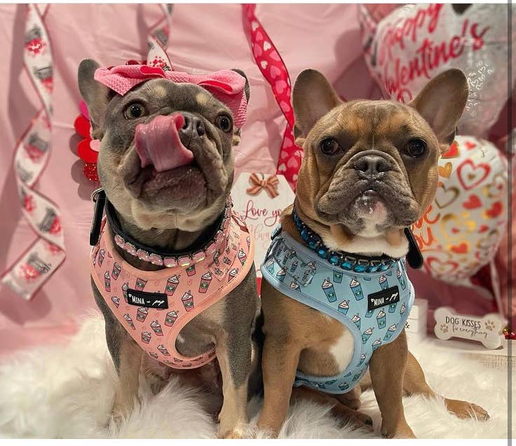 Raise your paw if you love coffee! Splurge on this yummy and fun pattern which includes a beautiful pink background covered with delicious blended drinks and hearts on a neoprene fabric.