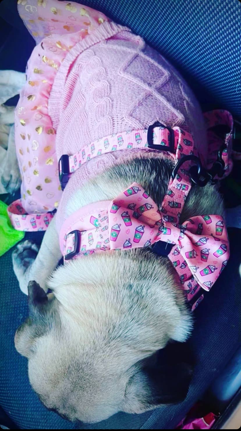 ♡ Secures in the back with a hook and loop strap to go over the pet's collar OR on the back of the harness regardless of their size.