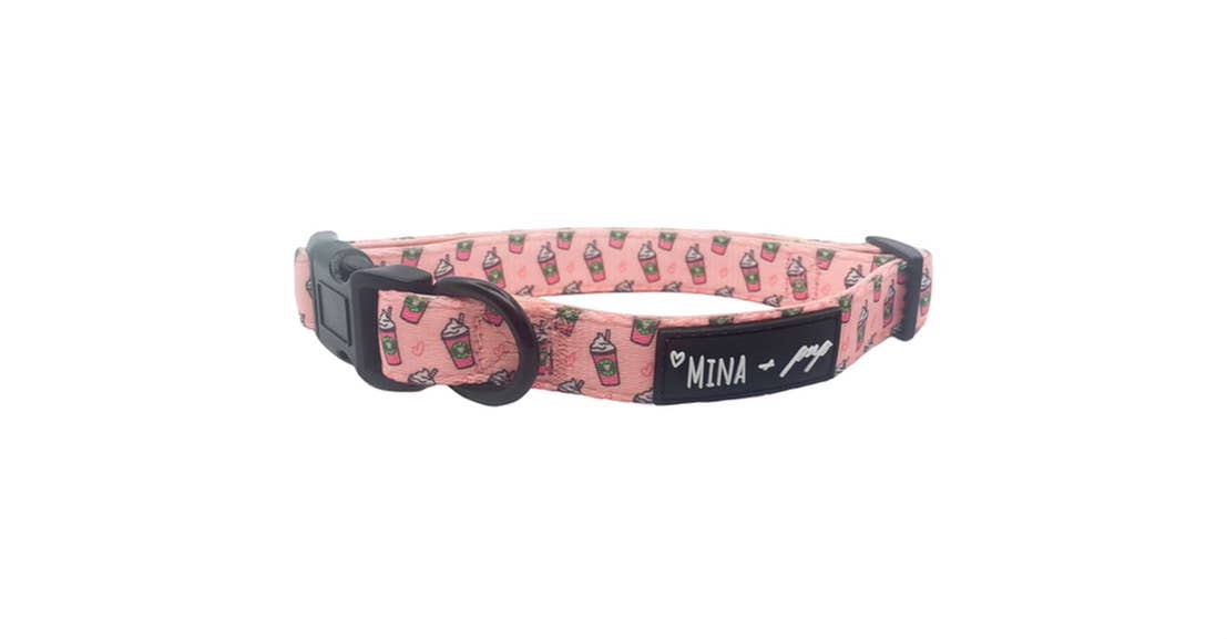 Comes in either Small or Medium with neoprene padding for extra comfort and quick-dry capabilities. Durable, printed polyester webbing strap, black D-Ring leash and tag attachment, fully adjustable for your pet's maximum comfort, and as always, unique and original Mina and Pup designs