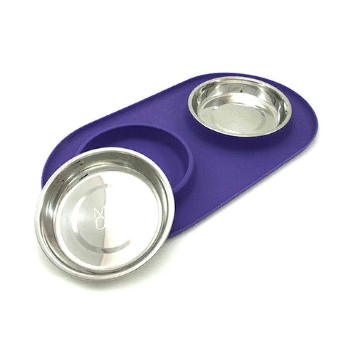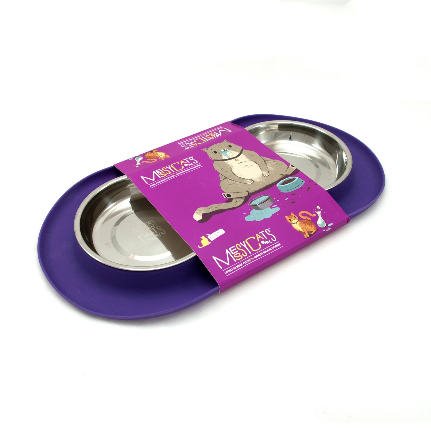 Feed your cat. Not your floor.The non-slip silicone base prevents damage to your floors and holds 2 stainless steel bowls in place for your cat. Contain any further messes with the wide lip and raised edge border.