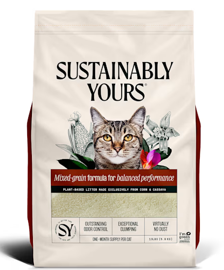 At Sustainably Yours, we set out to create a litter that is both high-performing and environmentally friendly. Our plant-based formula is full of benefits for both you and your cat-all while remaining sustainable. Mixed-grain formula for balanced performance.