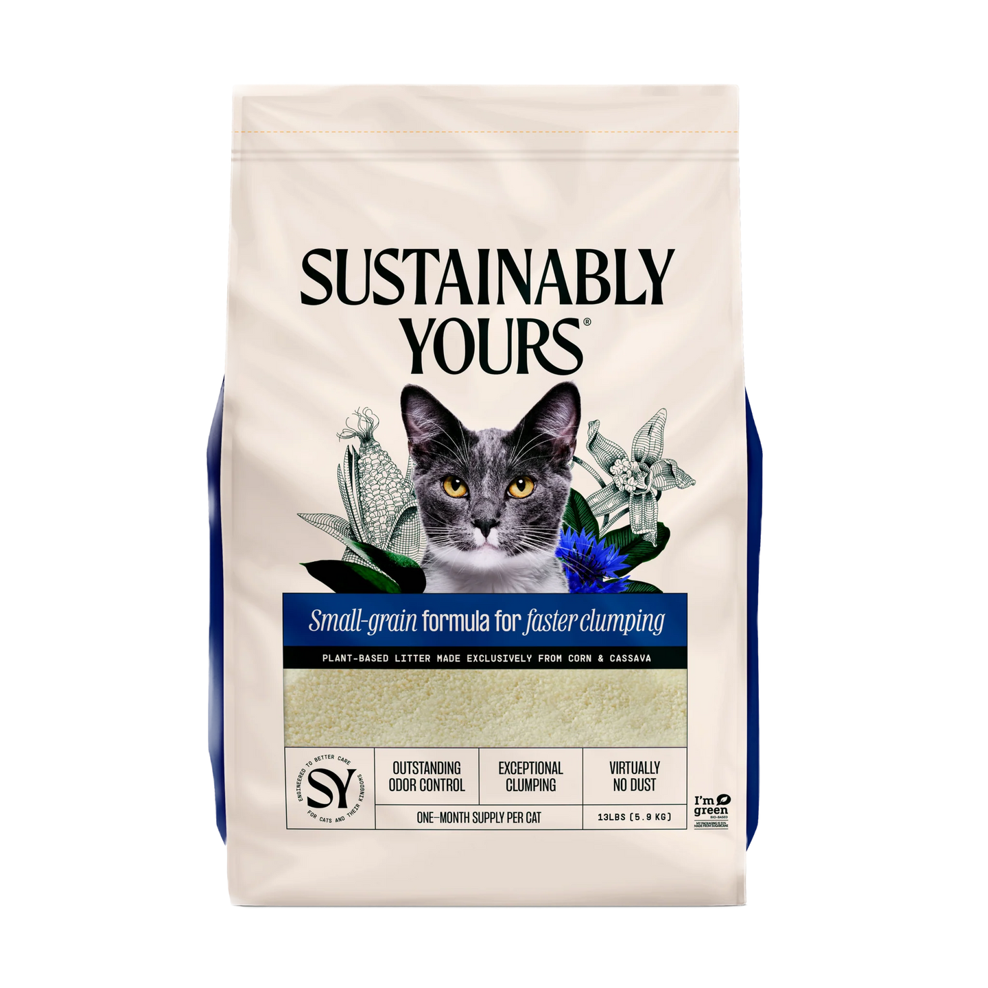 At Sustainably Yours, we set out to create a litter that is both high-performing and environmentally friendly. Our plant-based formula is full of benefits for both you and your cat-all while remaining sustainable. Small-grain formula for faster clumping.