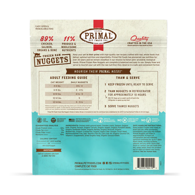 Primal Frozen Raw Nuggets Cat Food Chicken & Salmon Recipe