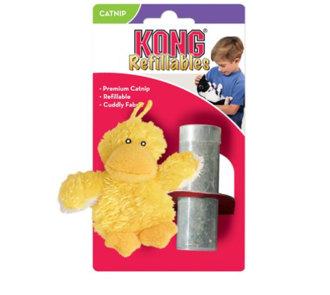 These soft and snuggly plush catnip toys have a reclosable pouch to hold fresh catnip securely in place. The toys include a generous amount of KONG's premium North American catnip in a reclosable vial. When the catnip scent starts to fade, simply add more fresh catnip for another round of fun! Catnip can be stored in the freezer to help keep it fresh. The toy is machine washable with the catnip removed