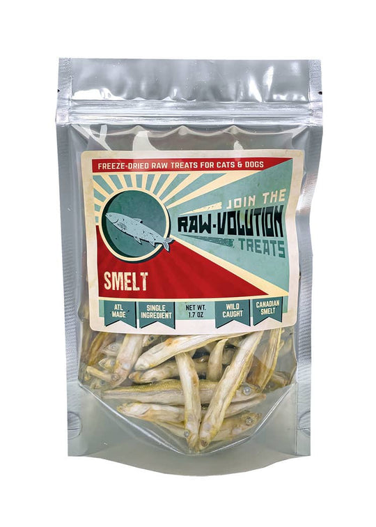 2 oz of freeze-dried wild caught whole Canadian Smelt made right here in the ATL! These Smelt are high in several vitamins and minerals including calcium, phosphorous, vitamin D, vitamin B and very rich in Omega-3...Regular price $13.99