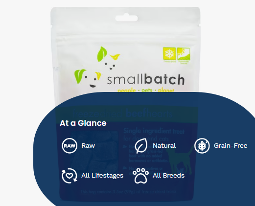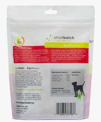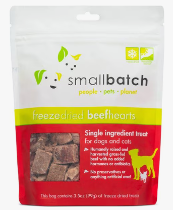 Smallbatch Pets Beef Hearts Grain-Free Freeze-Dried Dog & Cat Treats, 3.5-oz bag