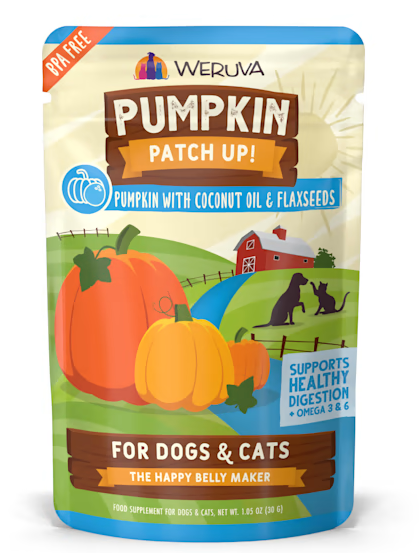 Pumpkin Patch Up! for dogs & cats is a great source of healthy fiber to support your dog's or cat's digestive system. Feed daily as a supplement to your pet's food - give as a treat, mix with wet food or as a topper to dry food. Great for both dogs and cats!