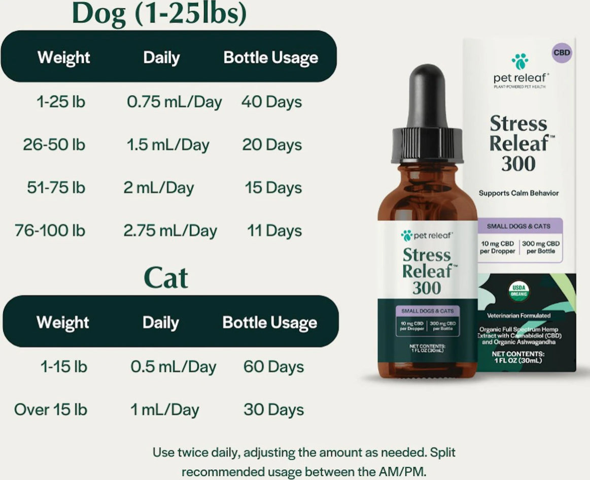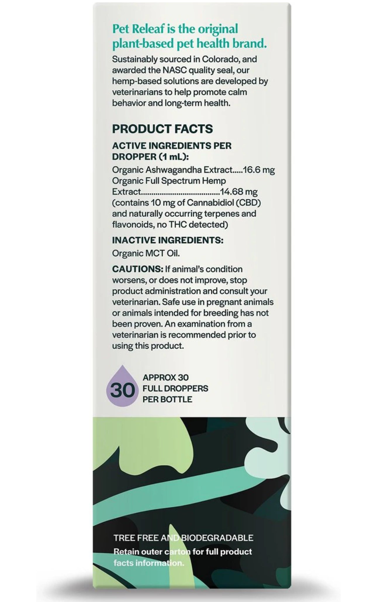 Pet Releaf Stress Releaf Organic CBD Oil & Ashwagandha Liquid Calming Health Supplement for Small Dogs & Cats, 300mg, 1-fl oz bottle