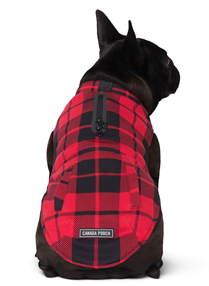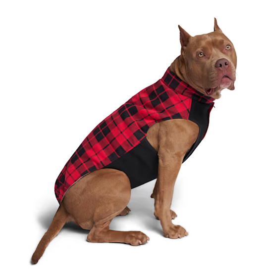 Remember to measure your pet for the paw-fect fit. Keep your pup cozy with Canada Pooch Thermal Tech Fleece Dog Sweater. This technical fleece dog vest reflects your dog's body heat and provides incredible warmth. The water-resistant fleece provides rain protection, and the over-the-head style makes it easy to pull over your pooch. Plus, there’s a zippered harness slit, ideal for a leash. With a stretch rib chest and non-shed lining, your pup will be warm and ready for any weather. Not to mention, he’ll look paws-itively fetching!