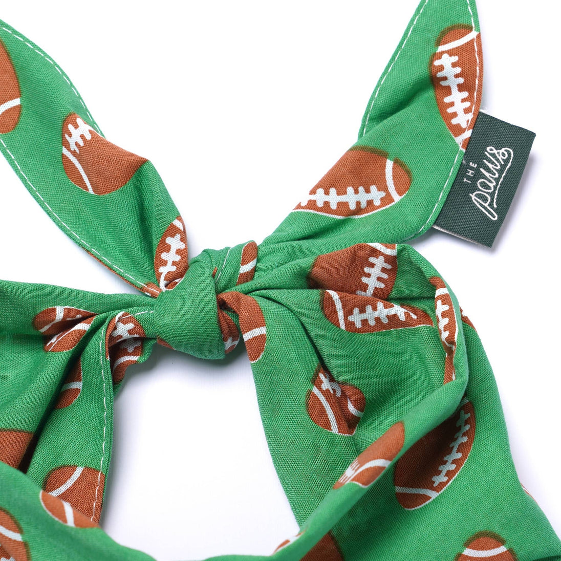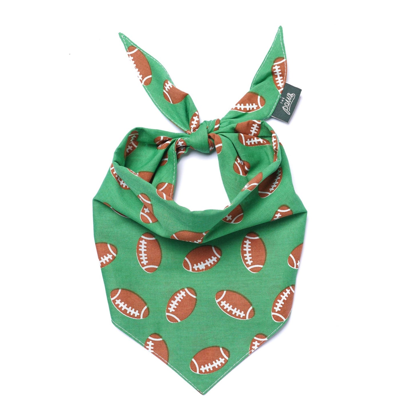 Defense, defense! Footballs flying - game time is here Tailor cut double sided dog bandanas - sized & ready to tie on - Triangle shape, no folding needed