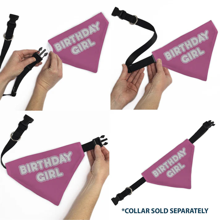 This fun and unique pet bandana is the cutest accessory for your pup! It slips right onto your dog’s 1-inch wide collar perfectly, so there are no troublesome knots that can come loose. Just slide your dog’s existing collar through the opening of the bandana and clip the collar closed for a comfortable fit.