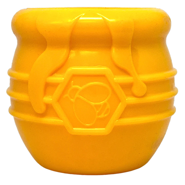 DISPENSES TREATS: Help your dog fight boredom by filling the Honey Pot with treats like kibble, canned dog food, peanut butter, or your favorite dog treat recipe. Best results: mix wet/dry foods. Freeze with treats inside to prolong use.