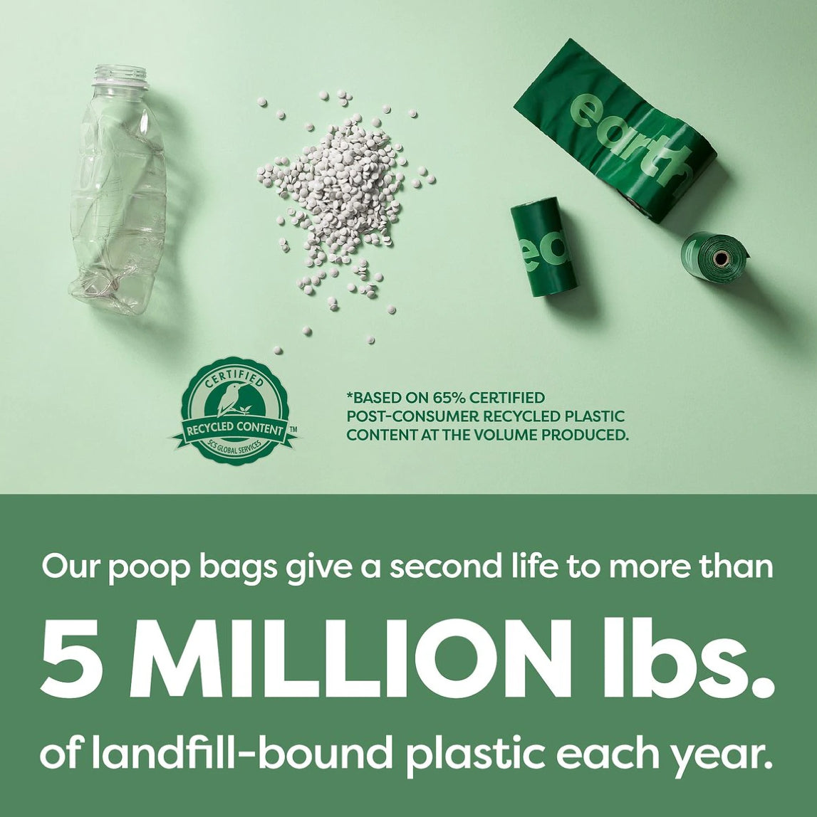 - - A BETTER POOP BAG: We make our dog poop bags with 65% certified post-consumer recycled plastic, giving a second life to over 5 million pounds/2.2 million kg of landfill-bound plastic a year