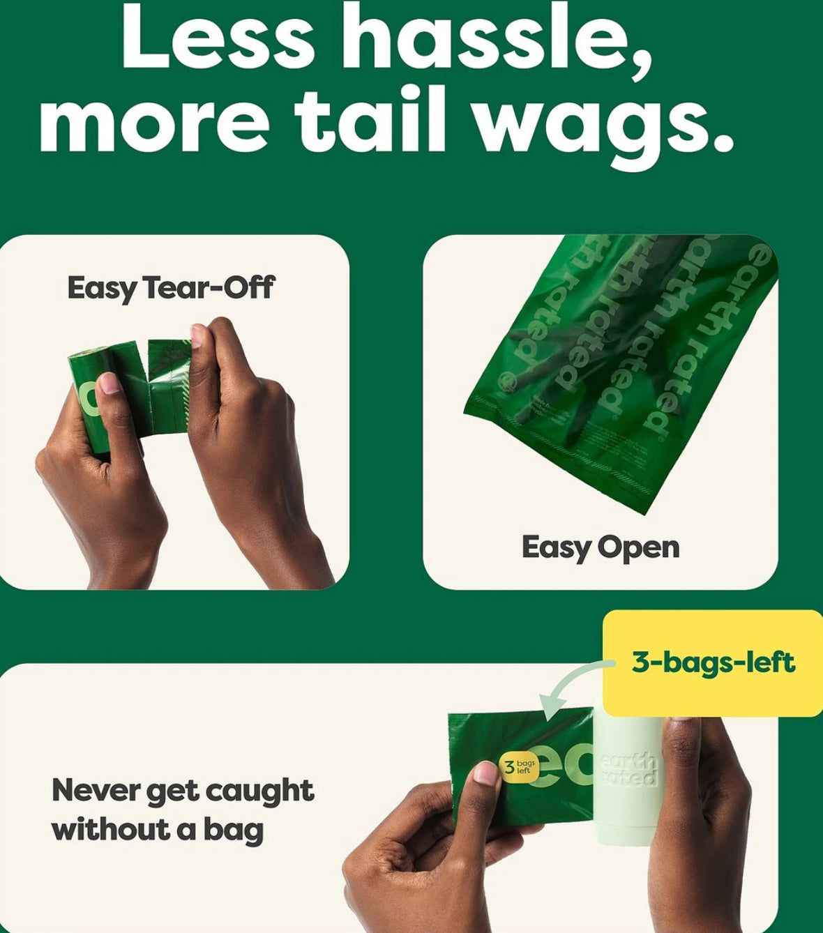 - - DOG POOP BAGS: Our durable poop bags are a dog-walking essential. They are extremely portable and pair perfectly with the Earth Rated Poop Bag Dispenser for easy access while on the go