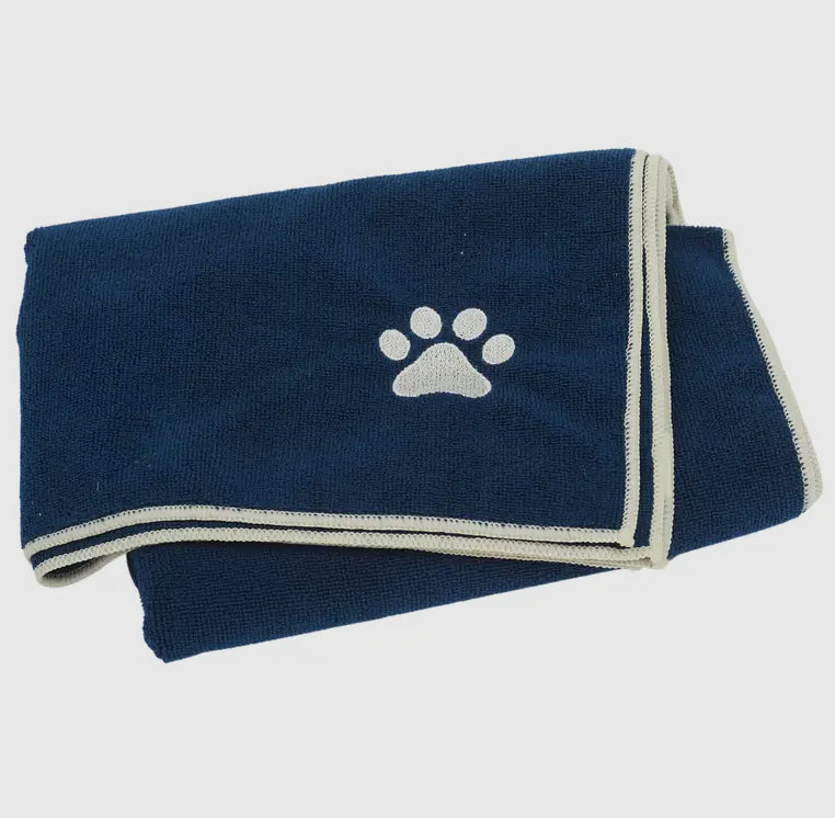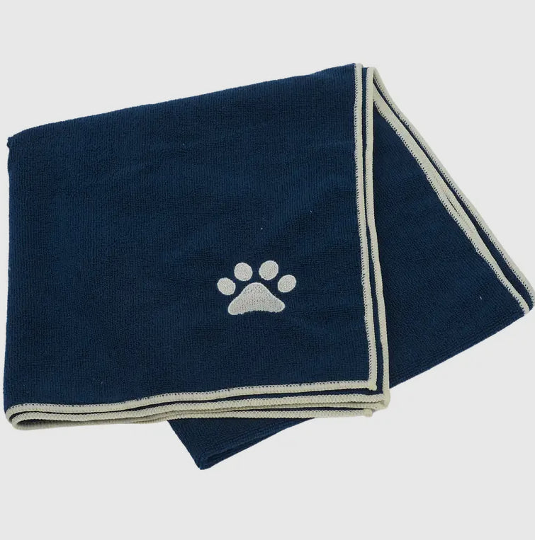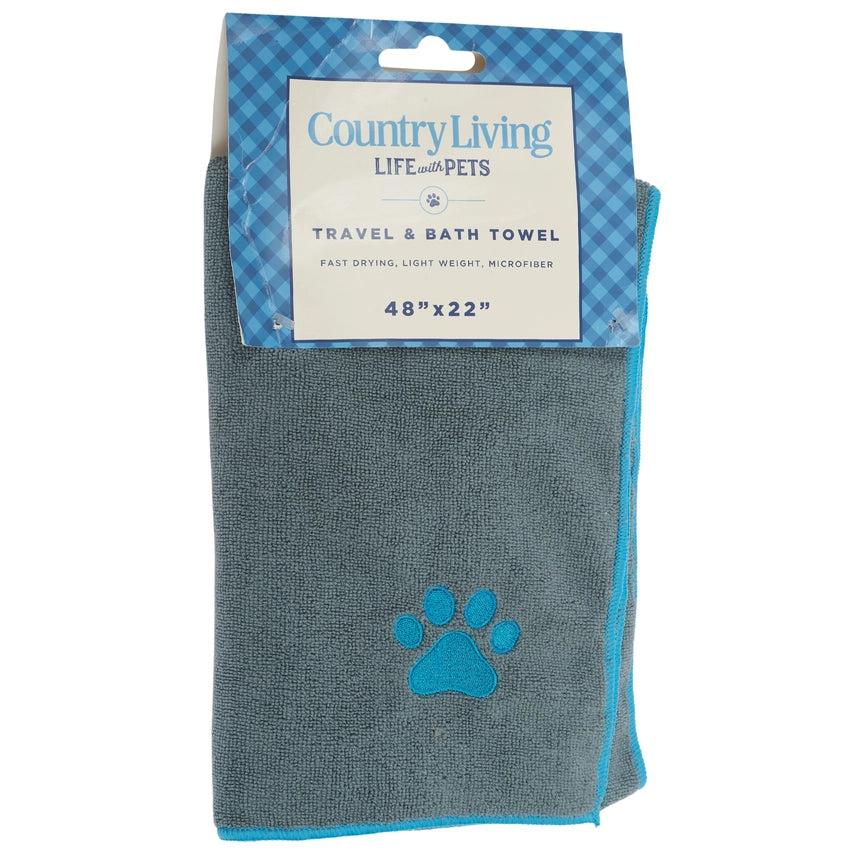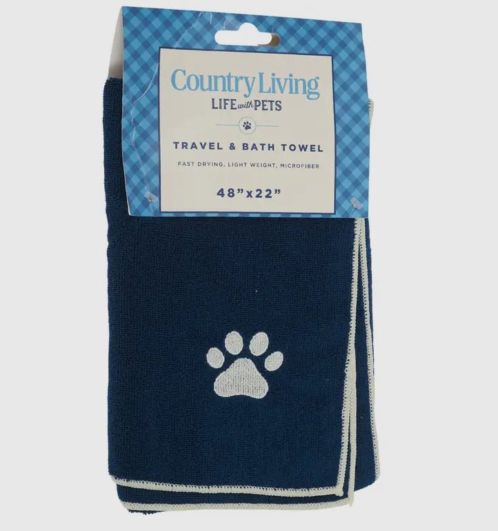 Country Living Microfiber Towel, specially designed for cats and dogs of all sizes. Made from high quality, weighted material, this towel ensures quick-drying and superior absorbency, perfect for all fur types. The charming embroidered paw print corner adds an adorable touch to your pet care routine.