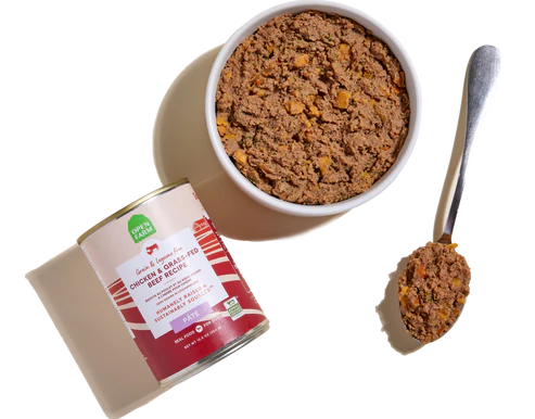 This complete and balanced pâté recipe features G.A.P. certified, humanely raised chicken and grass-fed beef. In addition, chicken liver and non-GMO vegetables such as sweet potatoes, carrots and spinach are added to provide a highly nutritious, delicious meal your pup will crave.