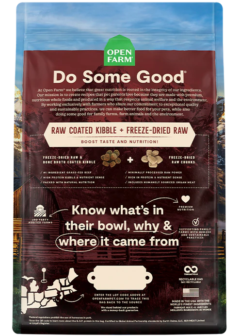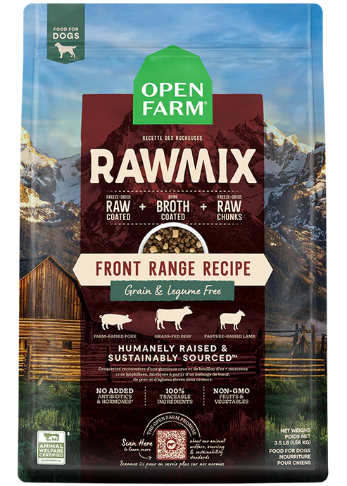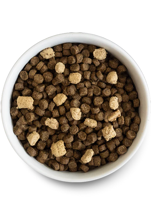 RawMix features our protein-packed kibble covered in a nutritious bone broth and freeze dried raw coating, with added chunks of pork & beef freeze dried raw. Crafted with a blend of 100% animal welfare certified grass-fed beef, pasture-raised lamb and pork, this irresistible recipe includes nutrient-dense meat, organ, and bone with no grains, legumes or any byproducts.