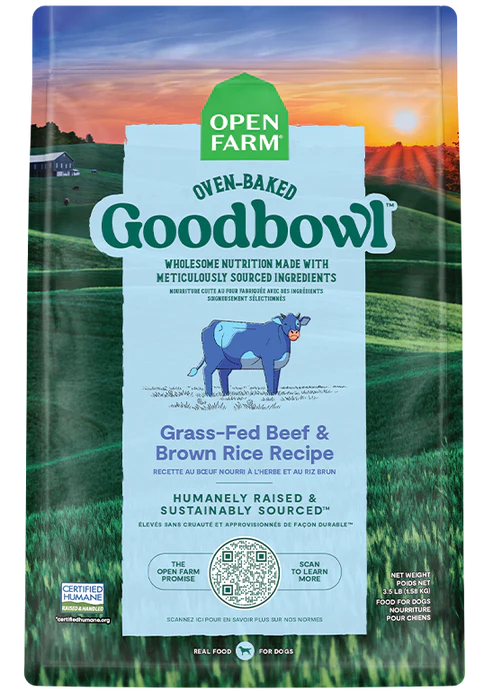 This Goodbowl™ recipe features oven-baked, wholesome kibble made with meticulously sourced, simple ingredients to provide optimal nutrition to your dog. This recipe is made with humanely raised grass-fed beef as the first ingredient, no antibiotics or added hormones, and wholesome grains like brown rice to provide a highly nutritious, digestible, and delicious meal for your pet. Every good dog deserves a Goodbowl™.