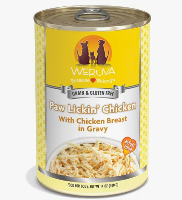 • All of Weruva's dog food formulas are formulated with the carnivore in mind, so this recipe focuses on high quality protein, minimal carbs and a high moisture content for the most nutritious meal around for your pup.
