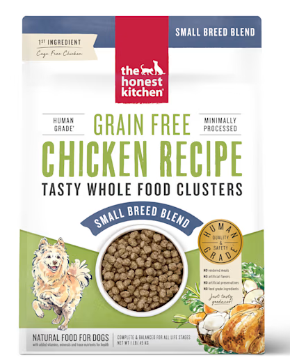 We believe that fresh, clean ingredients with minimal processing provide pets with the best nutrition possible. Created with a veterinary nutritionist, these 100% human grade clusters are made with cage free chicken (no rendered meals!), veggies, salmon oil and probiotics in proportions just right for little dogs. We cold press, slow roast and dehydrate each bite to maintain the taste and nutrition of whole foods in a size perfect for smaller dog mouths. Every batch is made in our human grade facility with lots of love and without compromise.