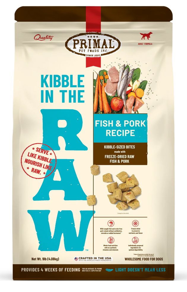 Kibble in the Raw Dog Food Fish & Pork Recipe