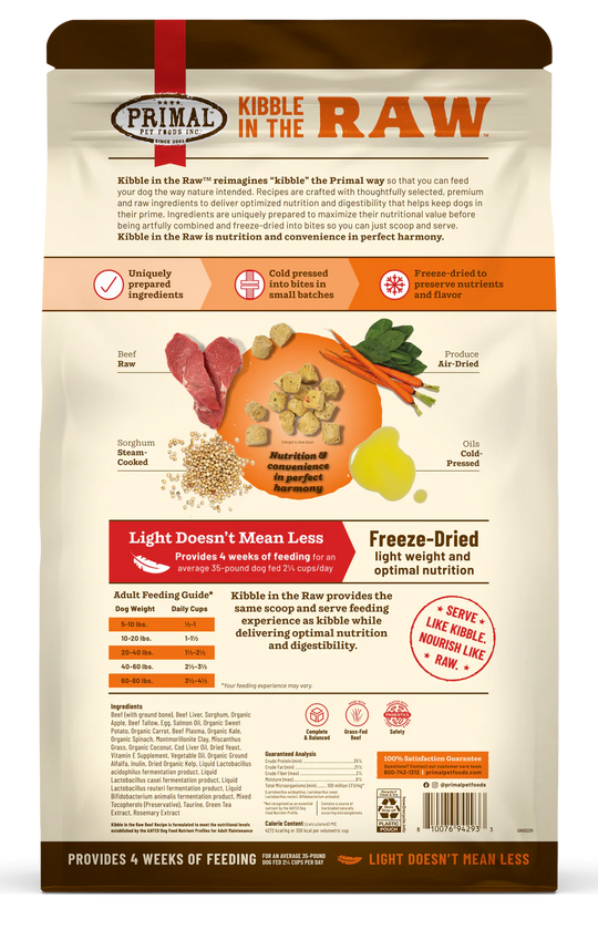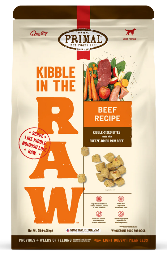 Kibble in the Raw reimagines “kibble” the Primal way so you can nourish your dog’s Primal needs. Our Beef Recipe is made with grass-fed beef and other thoughtfully selected, premium, and raw ingredients. Crafted entirely of...Regular price $89.99 -