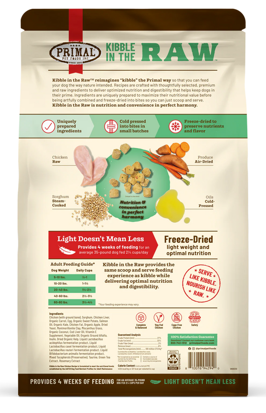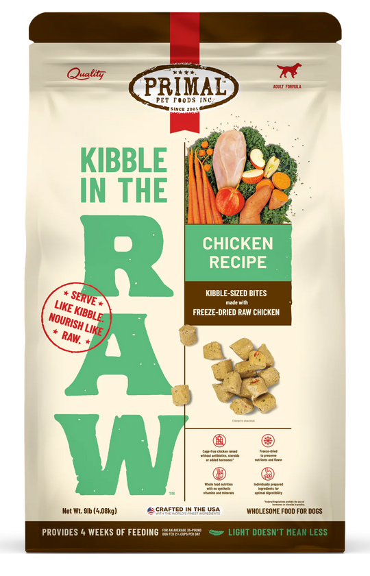Kibble in the Raw reimagines “kibble” the Primal way so you can nourish your dog’s Primal needs. Our Chicken Recipe is crafted with cage-free chicken raised without antibiotics, steroids, or added hormones and other thoughtfully selected,...Regular price $89.99 -