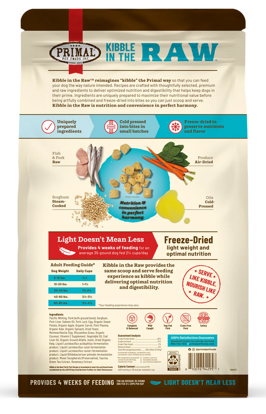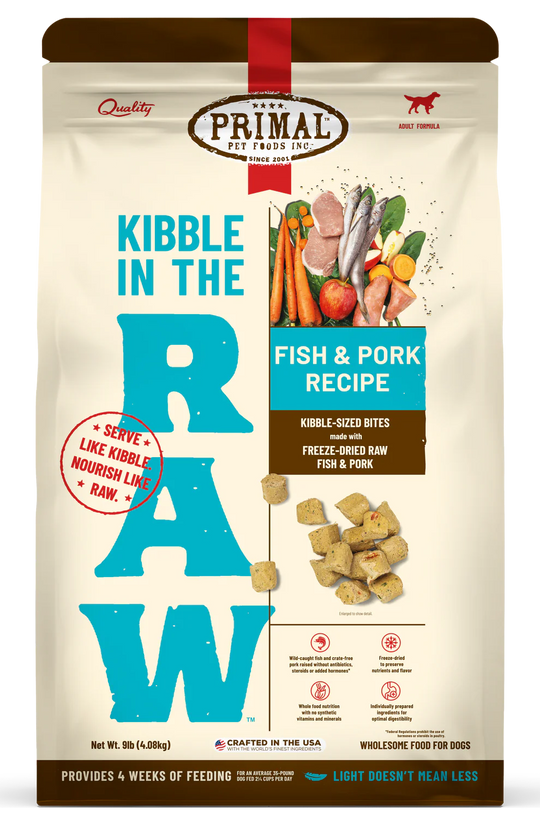 Kibble in the Raw reimagines “kibble” the Primal way so you can nourish your dog’s Primal needs. Our Fish & Pork Recipe is crafted with wild-caught fish and crate-free pork raised without antibiotics, steroids, or added...Regular price $89.99
