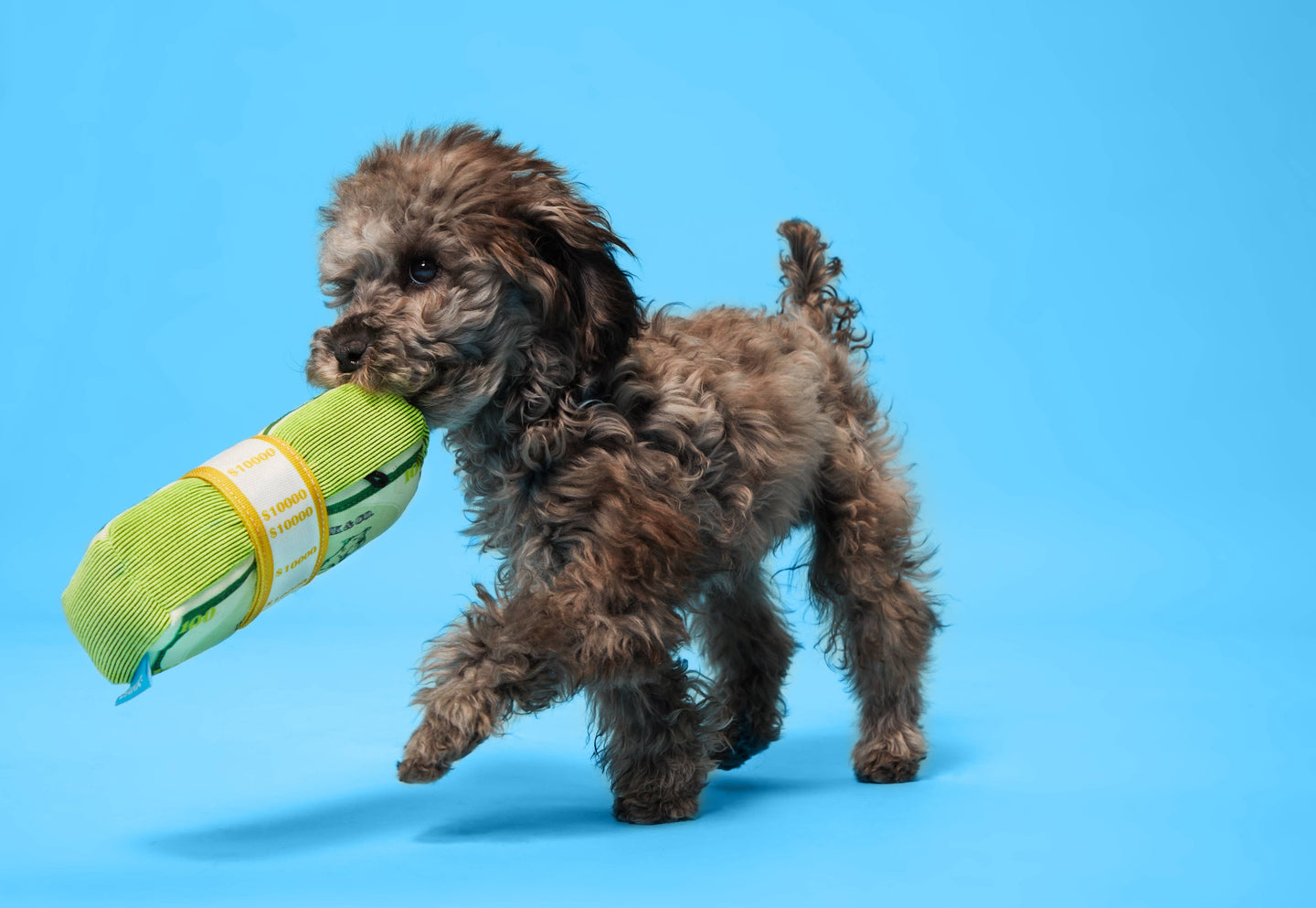 This stack of money dog toy is worth its weight in gold. Made with crazy crinkle, a squeaker, and packed with fluff, Doggo Doggo Bills Y'all is on the money. It's perfect for photo ops and making it rain at the dog park (in a good way.)