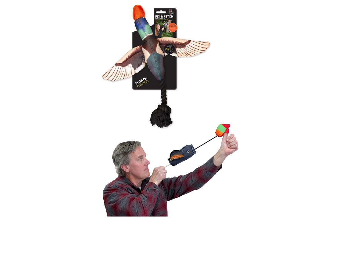 Our Fly & Fetch Toys will be your dog’s new flying friend! Stretch and release the built-in bungee cord to launch up to 100 feet. Floats. For use as a fetch toy - not designed as a chew toy.