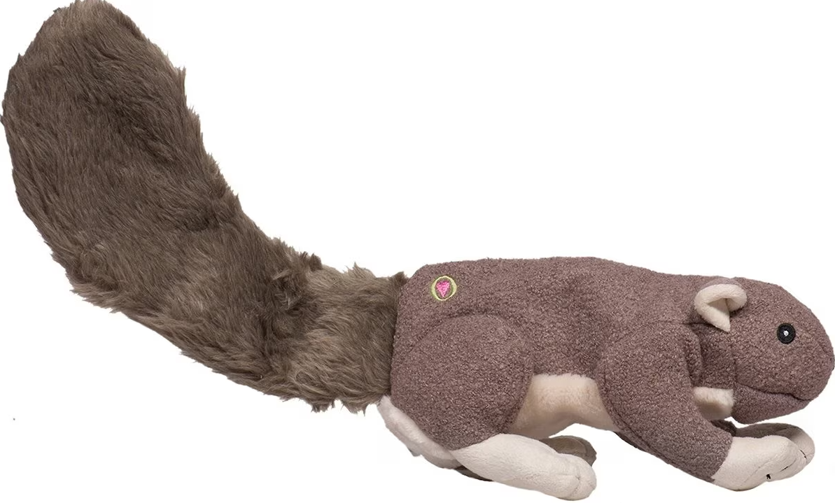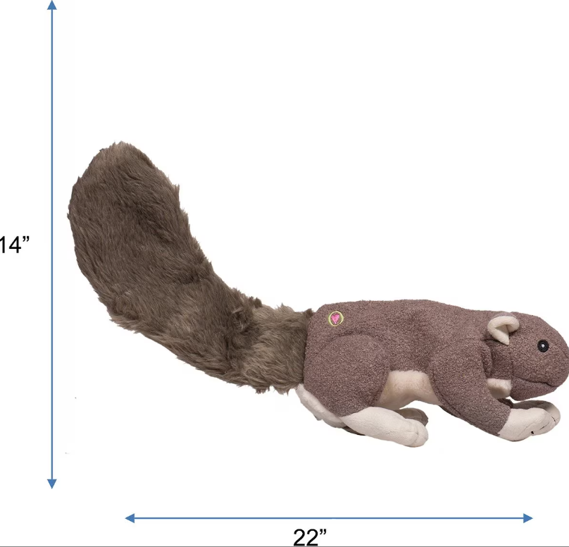 After years of painfully watching squirrels taunt from afar, your dog can finally have his way with the rodent family as the realistic look and feel of HuggleHounds Feller Durable Plush Squirrel Squeaky Dog Toy will pass for an actual squirrel. Oh, he has so much time to make up for! The faux fur and under-stuffed body make for ease of play, carrying and tossing. The Squirrel also has a squeaker and a crinkle tail for added excitement!