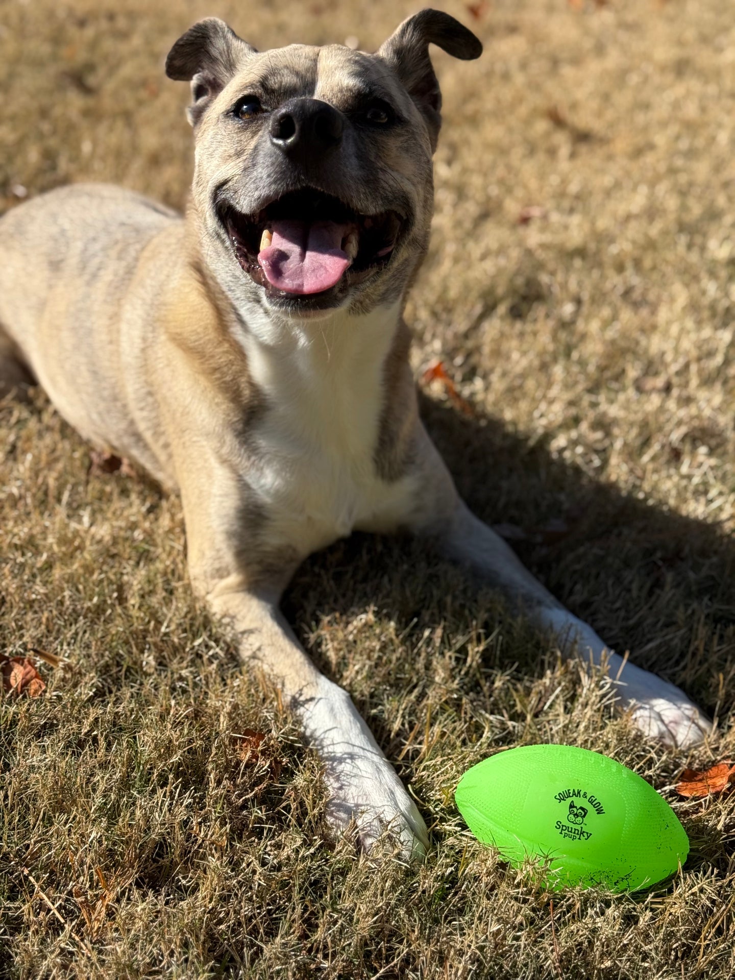 With a textured surface and easy-to-throw design, your pup will be the MVP of the backyard! Go long! durable, glows in the dark, squeaks and floats.