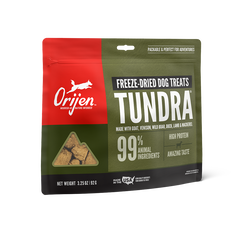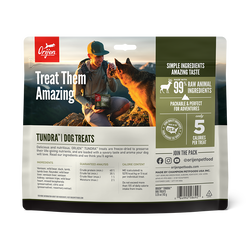 Treat your dog to delicious and nutritious ORIJEN® Freeze-Dried Treats. Packed with animal protein, our Tundra Recipe is made with 99%* animal ingredients including nourishing venison, wild boar, duck, lamb and flounder. Freeze-dried to lock in their rich nutrients and flavor, they’re packable and perfect for adventures. At just five calories each, ORIJEN Freeze-Dried Treats are loaded with protein and amazing taste.