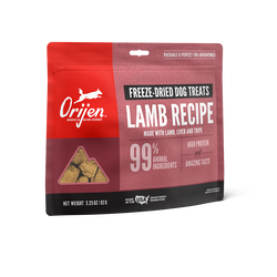 Treat your dog to delicious and nutritious ORIJEN® Freeze-Dried Treats. Packed with animal protein, our Lamb Recipe is made with 99%* animal ingredients including nourishing lamb, liver and tripe. Freeze-dried to lock in their rich nutrients and flavor, they’re packable and perfect for adventures. At just six calories each, ORIJEN Freeze-Dried Treats are loaded with protein and amazing taste.