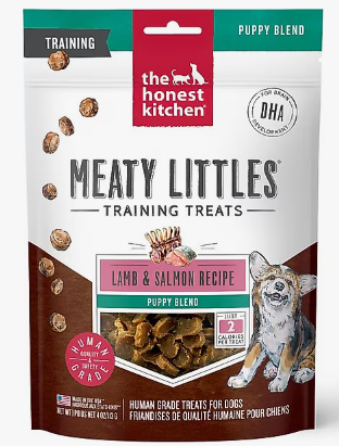 Give your little pup a head start with The Honest Kitchen Meaty Littles Lamb & Salmon Dog Treats. These human-grade rewards, with just two calories per treat, are specially crafted for puppies and packed with essential nutrients for their overall health and well-being. Made with high-quality ingredients like DHA for brain development, pumpkin for digestion, vitamin E for immune support, and omegas for a shiny coat, these treats are tasty and help support health.