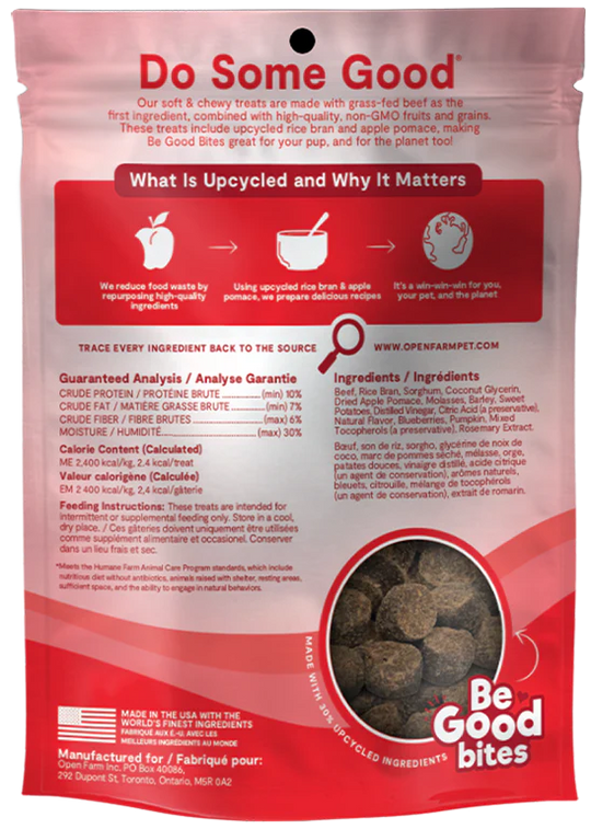 Our Grass-Fed Beef Recipe Soft & Chewy treats are made with humanely raised grass-fed beef as the first ingredient, combined with high-quality non-GMO fruits & grains. These treats included 30% upcycled ingredients, making Be Good Bites...Regular price $10.99 -