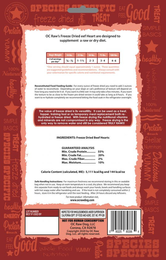 Description: Elevate your dog's diet with OC Raw Beef Hearts Freeze Dried Dog Treats! Made with high-quality, natural beef hearts, these treats provide essential nutrients and a delicious taste your dog will love. Use them as...Regular price $15.99 -
