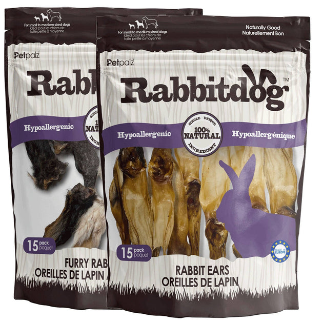 Rabbitdog Rabbit Ear Dog Chew Treats, 15 Pack
