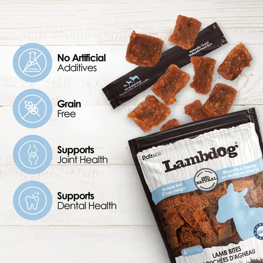 Lambdog Lamb Bites – 100% Lamb Chews Give your dog a protein-rich, wholesome treat with Lambdog Lamb Bites. Made from grass-fed, free-range lamb and produced in Europe, these single-ingredient bites are packed with essential nutrients to...Regular price $17.99 -