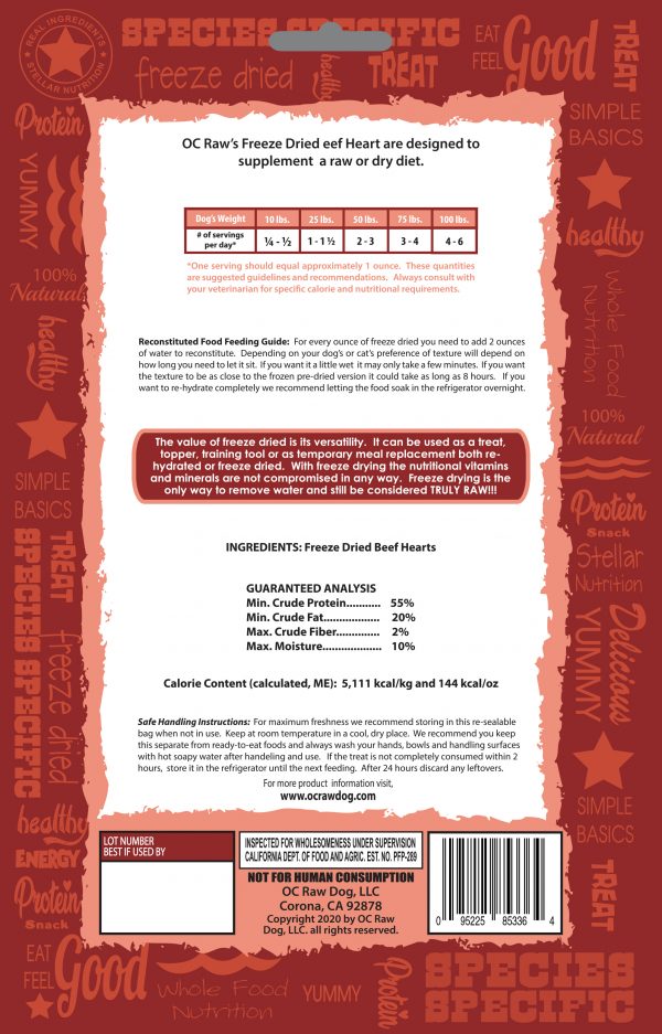 OC Raw Beef Hearts Freeze Dried Dog Treats