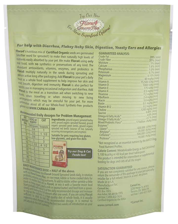 Carna4 Flora4 Greens PLUS Ground Sprouted Seeds Food Topper For Dogs & Cats