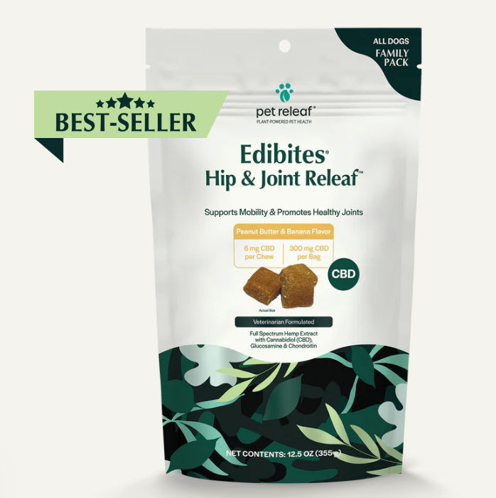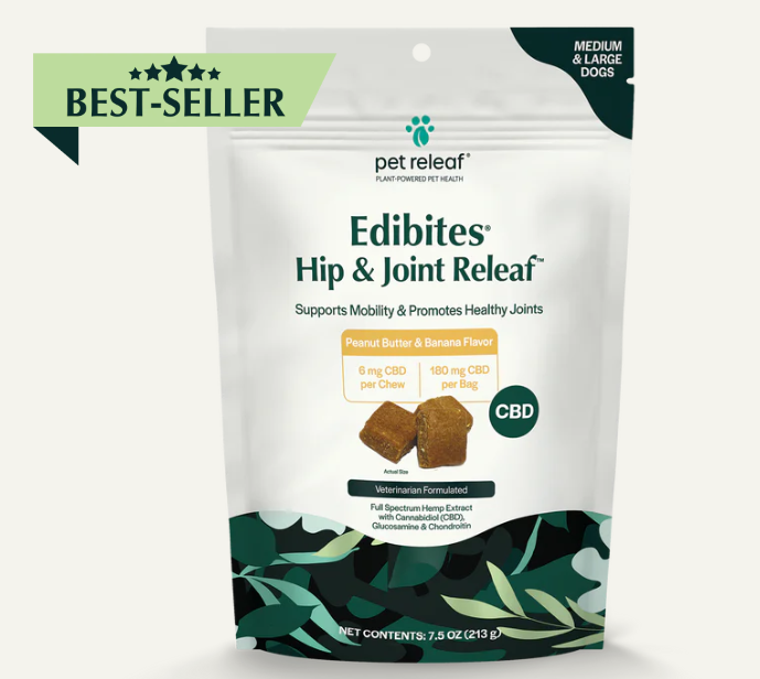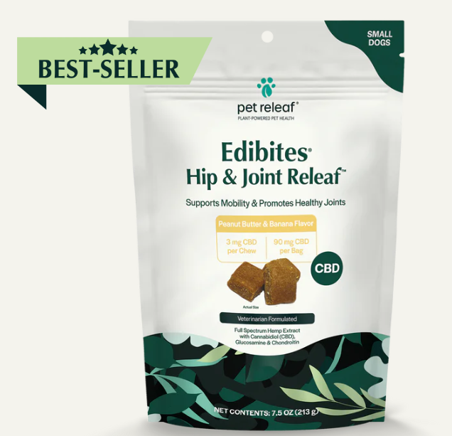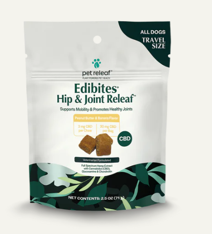 - Designed to keep dogs' bones strong and joints functioning optimally, Hip & Joint Releaf Edibites promote healthy joint fluid viscosity and proper back function, making them especially beneficial for pups in training or pets experiencing occasional joint stiffness.