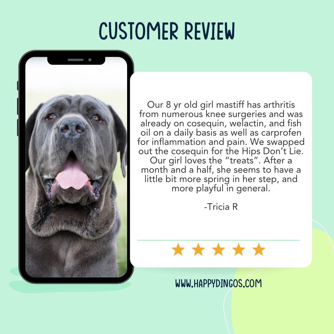 Keep your pup 💃🏽 ready-to-go with Hips Don't Lie! This hip & joint supplement helps reduce inflammation, lubricate joints and maximize flexibility & mobility.