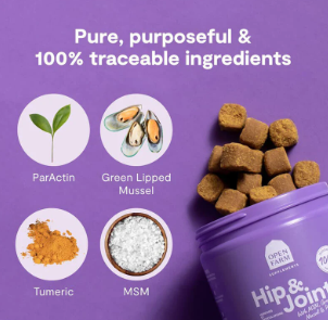 Daily motion can take toll on an aging dog. Open Farm Hip & Joint chews were formulated to help support joint health and mobility using only 100% traceable and vet-recommended functional ingredients.