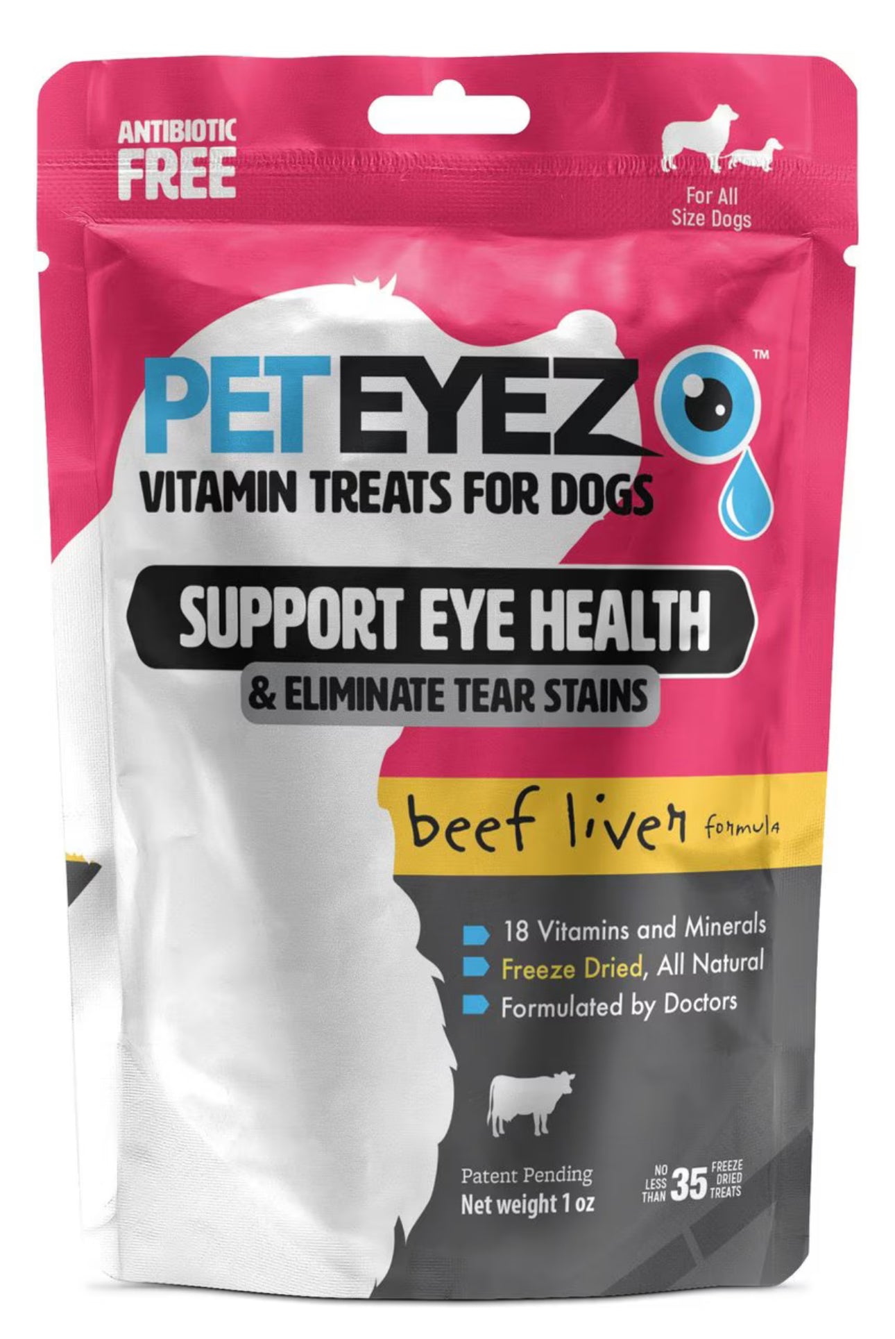 Help your buddy keep his eyes clear and sharp with the Pet Eyez Beef Liver Freeze-Dried Vision & Tear Stain Supplement for Dogs. This freeze-dried supplement is specially designed to support your furry friend's eye health. Developed by optometrists and veterinary specialists, this supplement contains the perfect blend of natural ingredients to provide optimal retinal and lens support in dogs. Formulated with all-natural protein, antioxidants, and 18 essential vitamins and minerals, it’s 100% natural, grain-free, and free of antibiotics. Say goodbye to messy tear stains and help keep your pup’s peepers in top shape with this functional eye supplement.