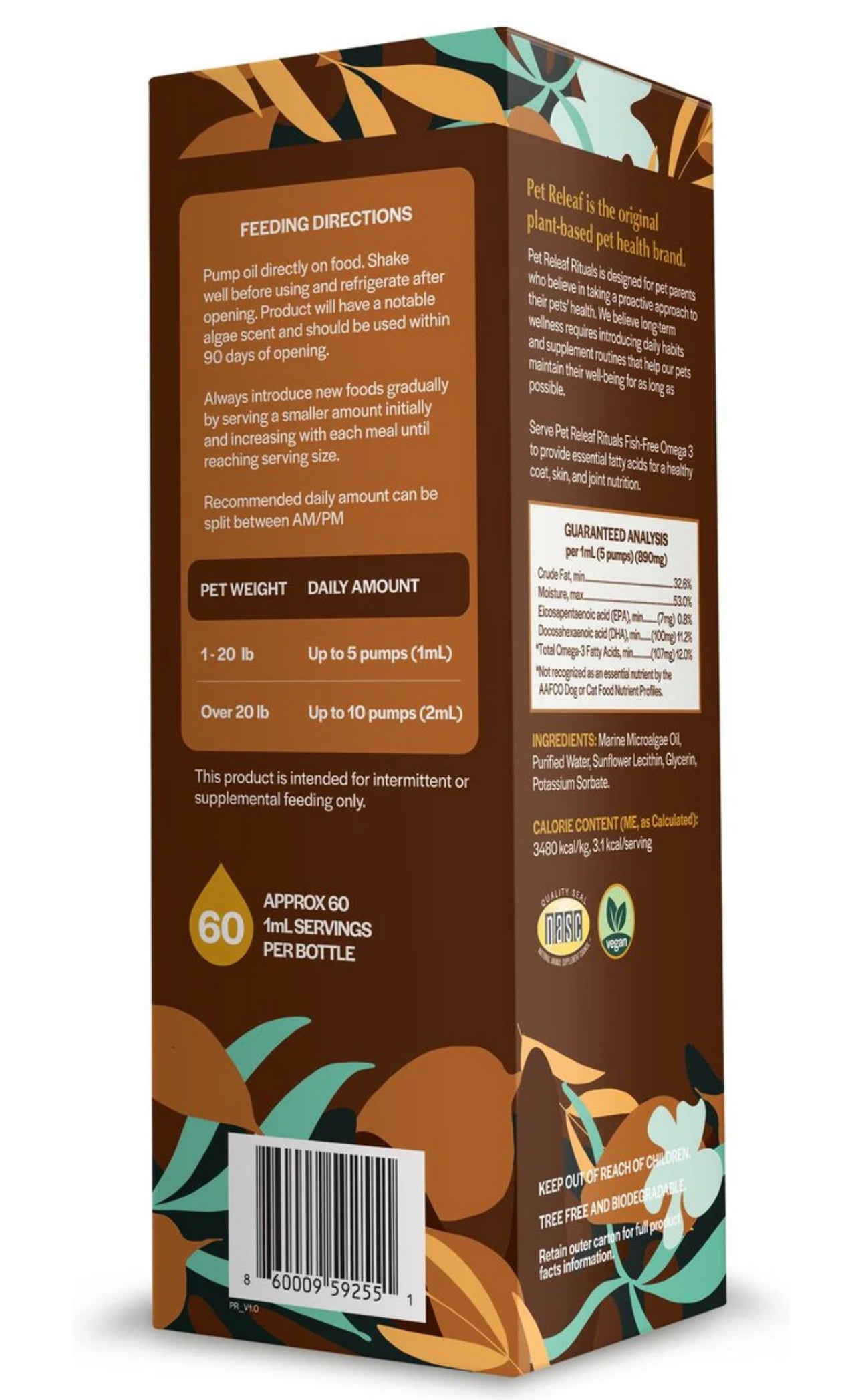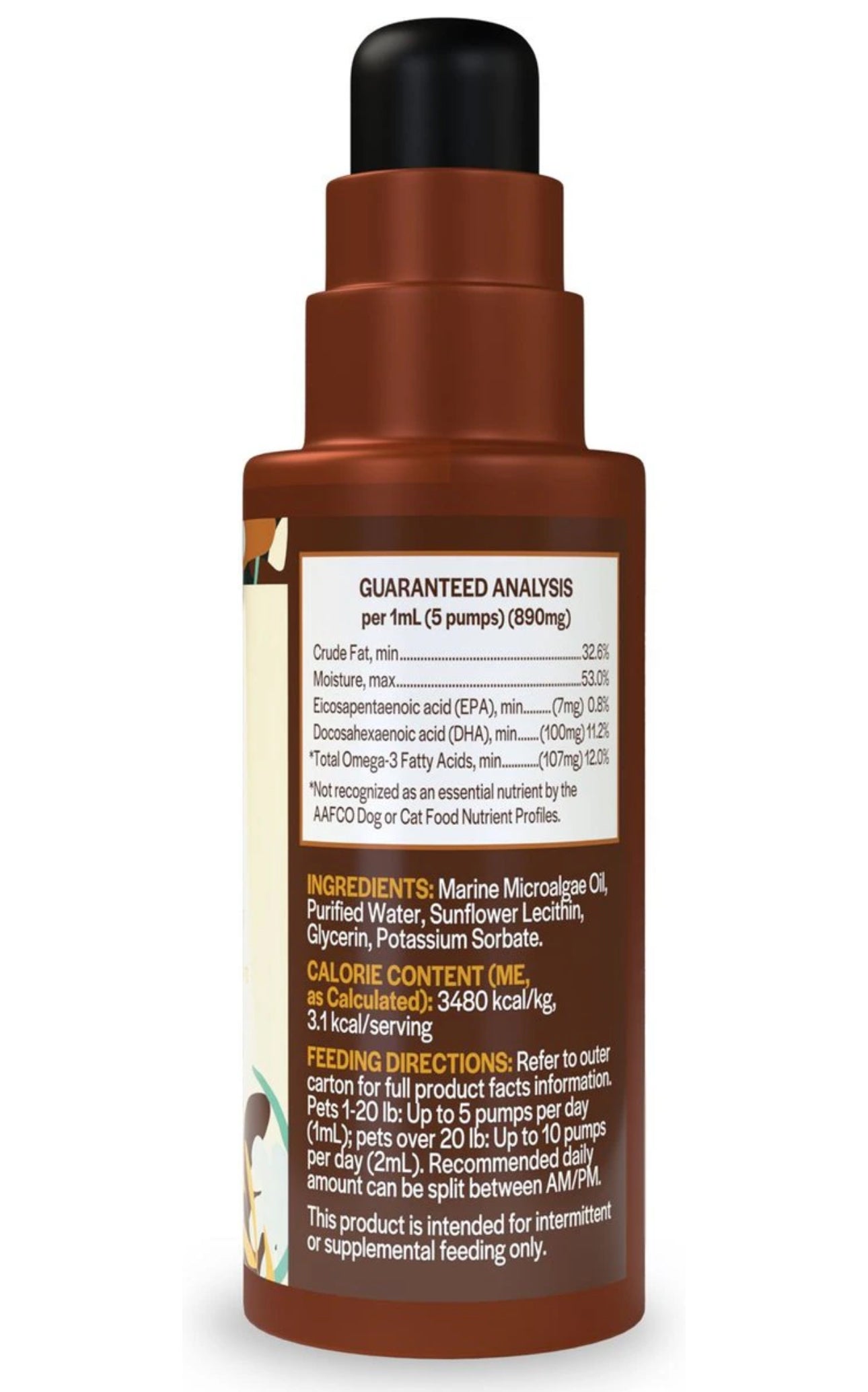 Each bottle of Fish-Free Omega 3 offers fatty acids to support your pet’s healthy coat, skin, cardiovascular system, and joint nutrition.