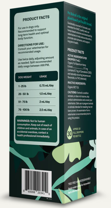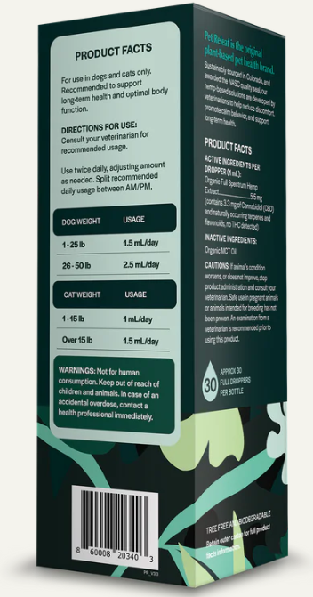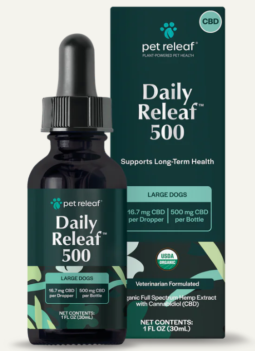 Keep your pet healthy and active with our USDA Organic Daily Releaf CBD Oil. This all-in-one formula supports mobility, promotes calmness, aids digestion, and soothes sensitive skin—perfect for general wellness and longevity. Designed for pets with chronic health issues, our easy-to-use oil makes daily care simple. Start with our recommended usage based on pet weight and increase as needed. Administer outside of mealtimes.